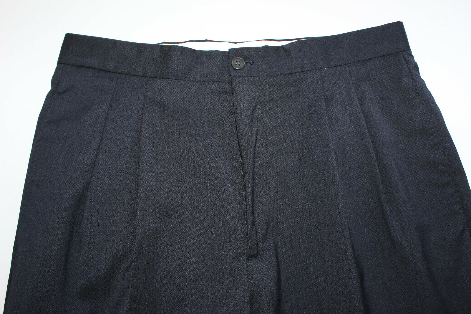 - Die Hose hat eine doppelte Bundfalte und keinen Umschlag(noch unversäumt)