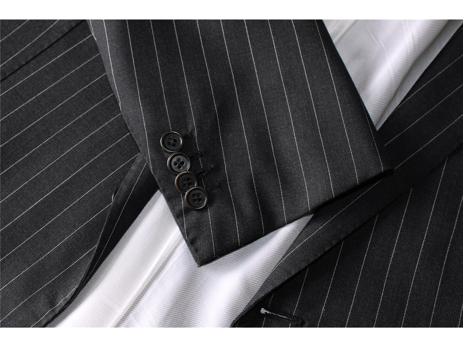 moderne 2-Knopf Optik. Zudem weist er luxuriöse Nadelstreifen auf.