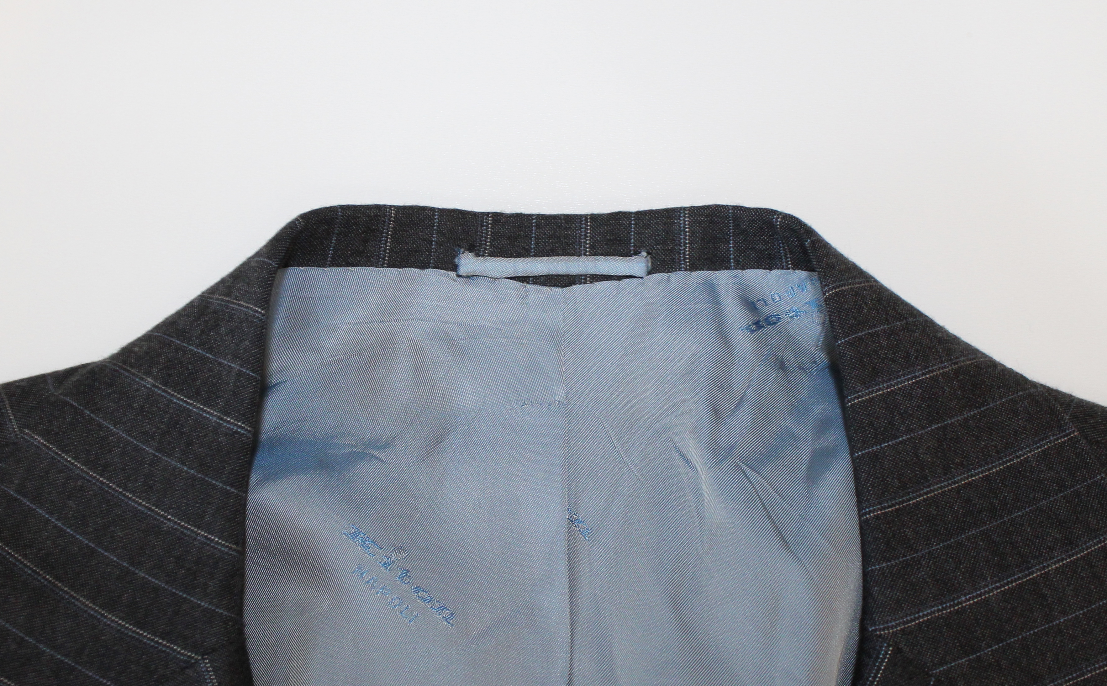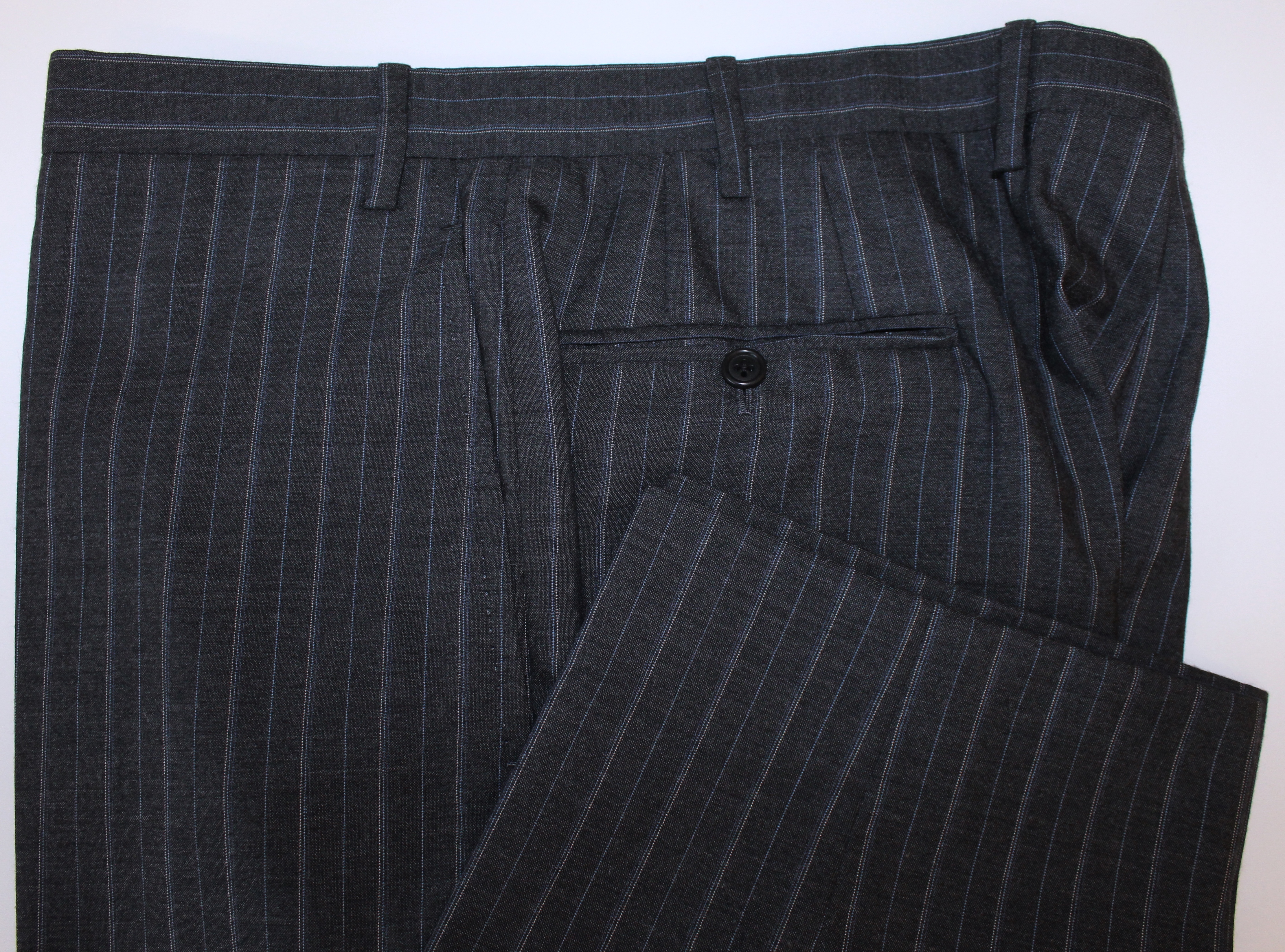 • In der Farbe Grau mit dezenten Nadelstreifen in Weiß und Blau