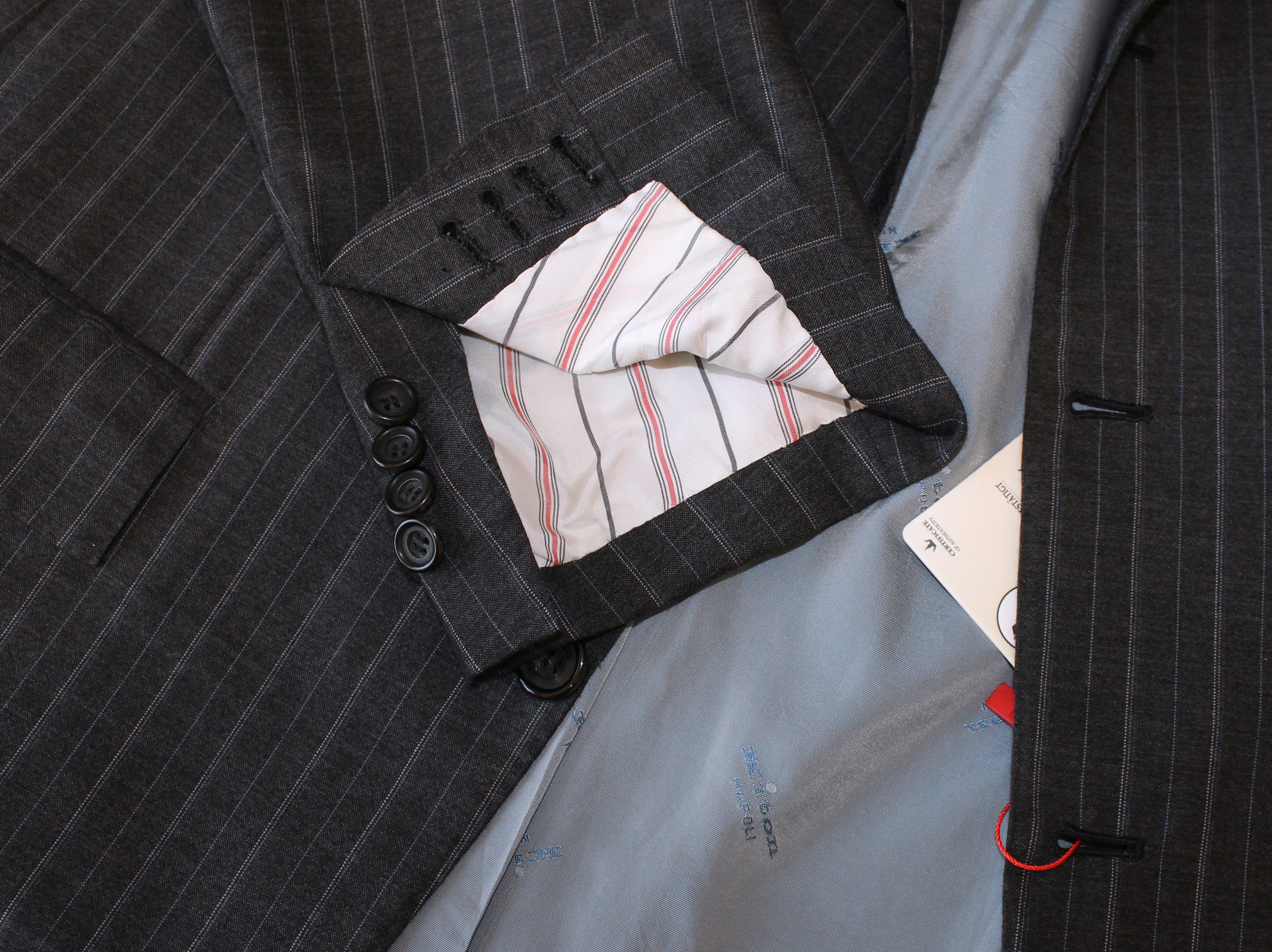 • Das handgenähte Sakko schließt mit 3 Knöpfen, doppelter Gehschlitz
