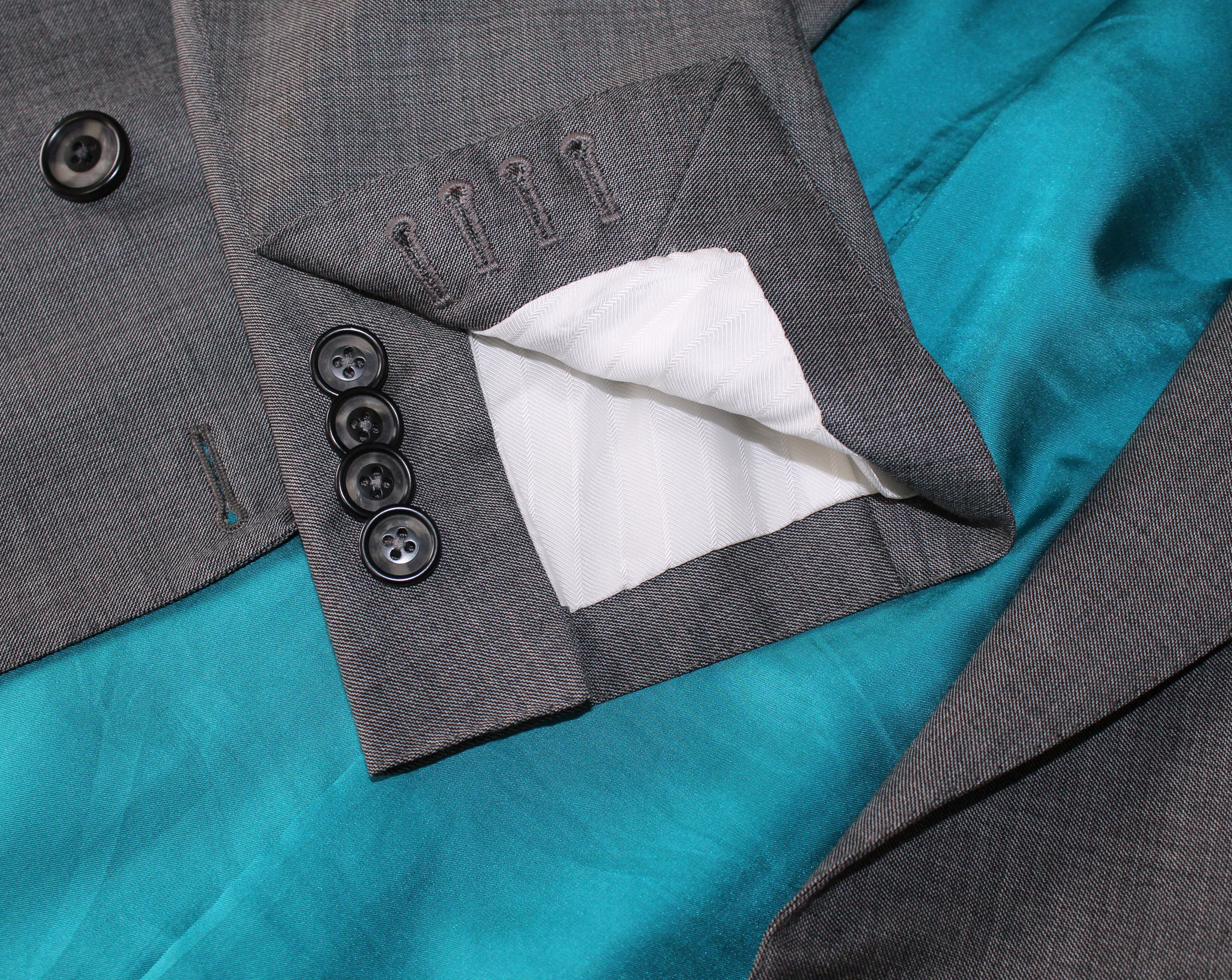 • Handstichnaht an sämtlichen Fronttaschen, Manschetten und dem Revers